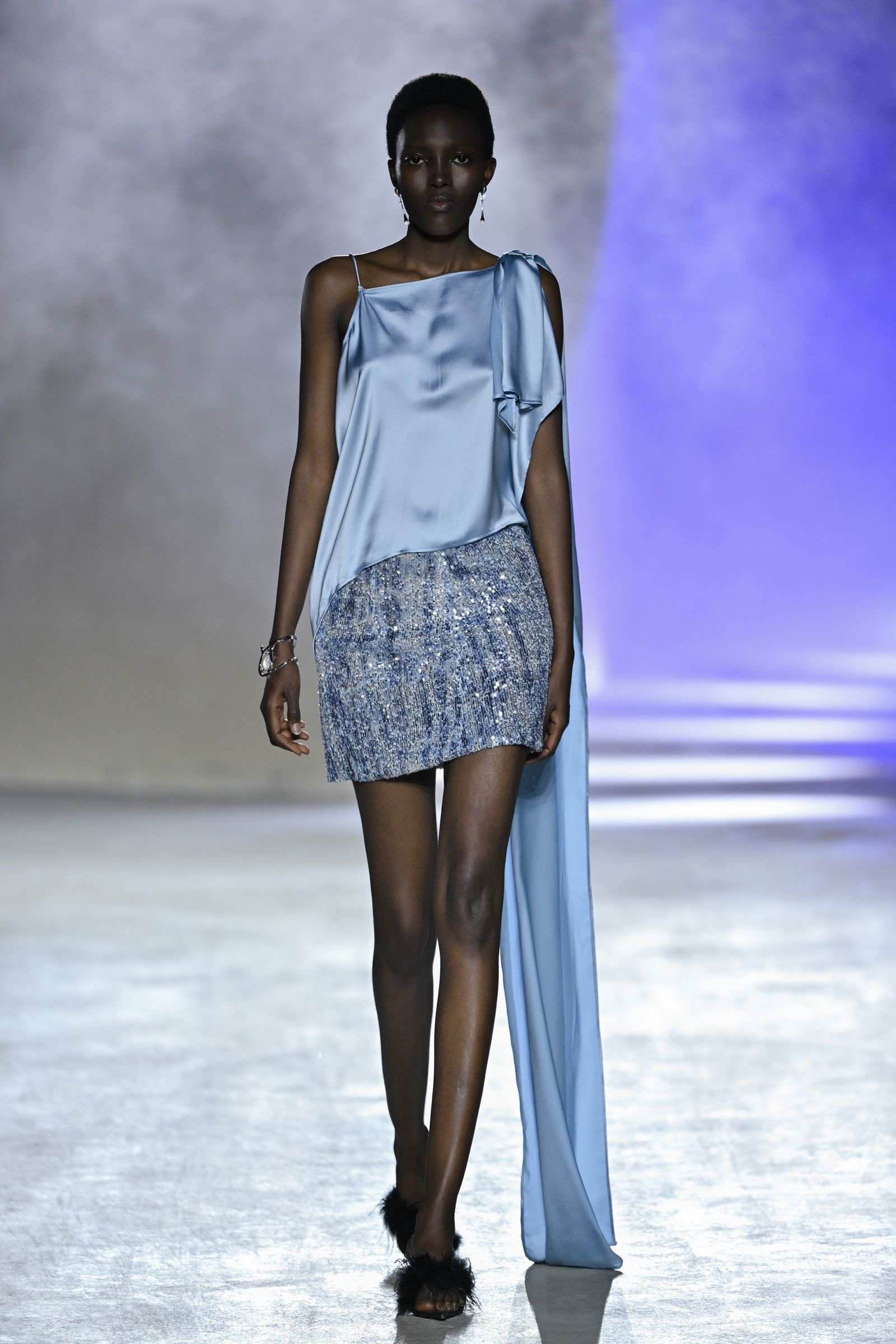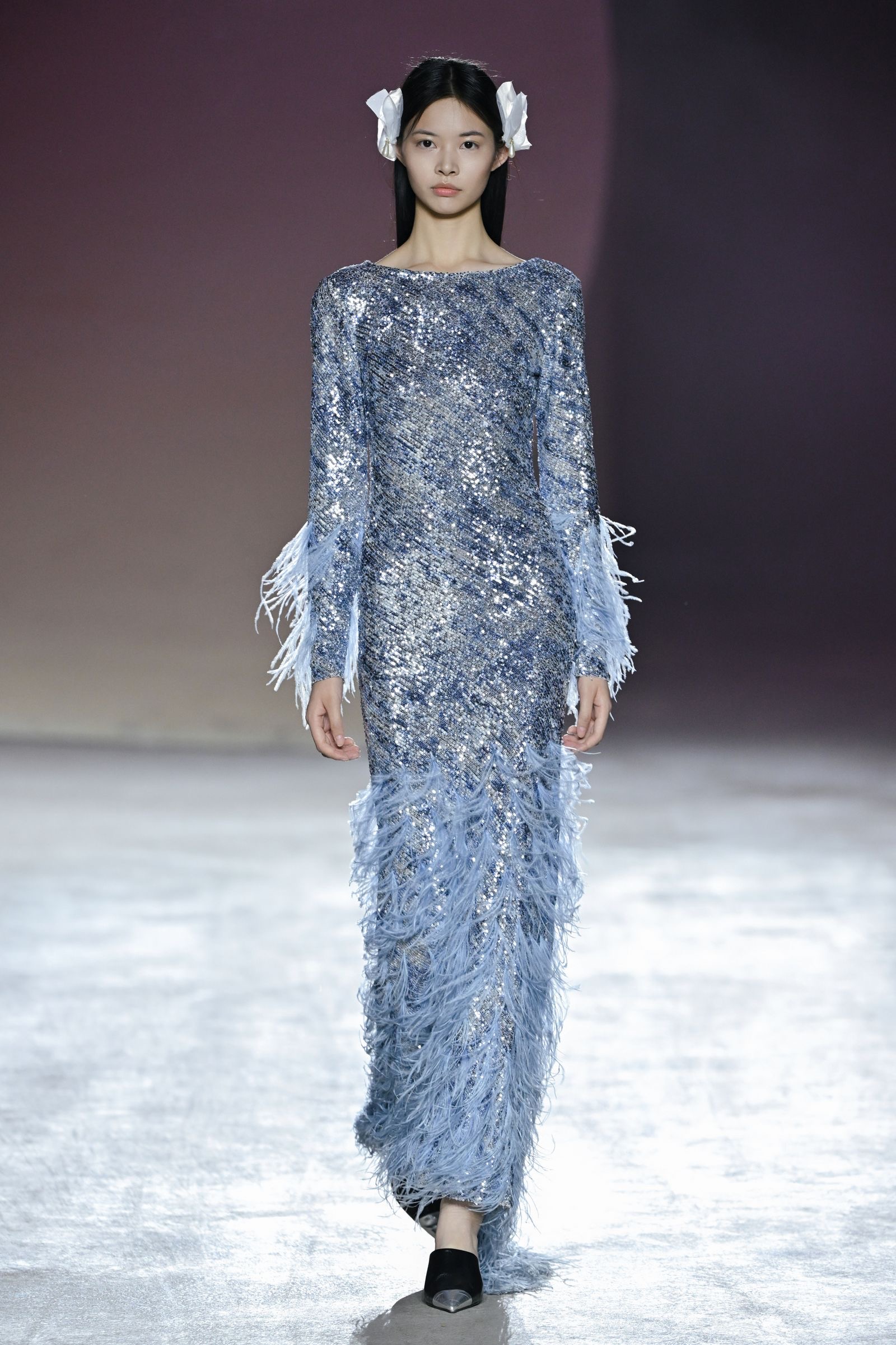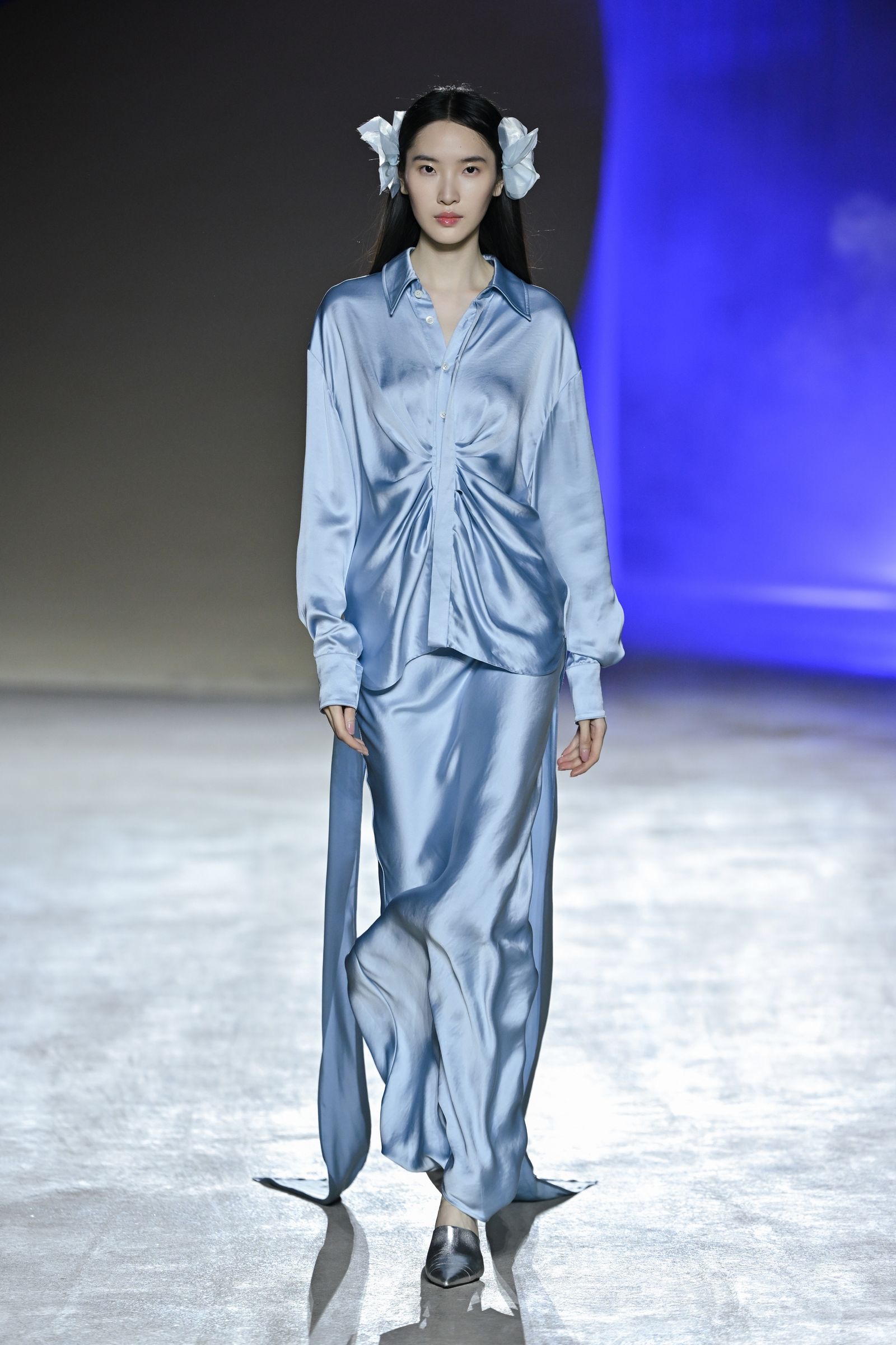HUI品牌则将在米兰时装周上惊艳亮相的“高·髻”系列带回中国。“高·髻”系列的灵感来源于中国古代女子的发髻,云髻博鬓象征着对于时尚和美的亘古不变的追求,高耸精致的发髻背后是女性跨越时代延续而来的自信与风采。HUI品牌创始人赵卉洲延续品牌一贯的“非遗再设计”理念,将贵州非遗长角苗、山雀纹等元素融入设计当中,以精致剪裁融合民族匠人工艺呈现出简约大气中流露着东方神秘与浪漫美感的现代女性形象。