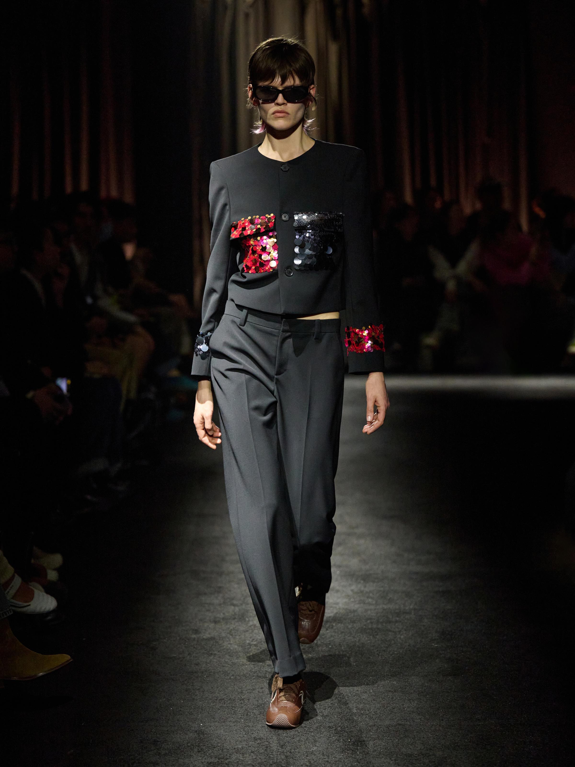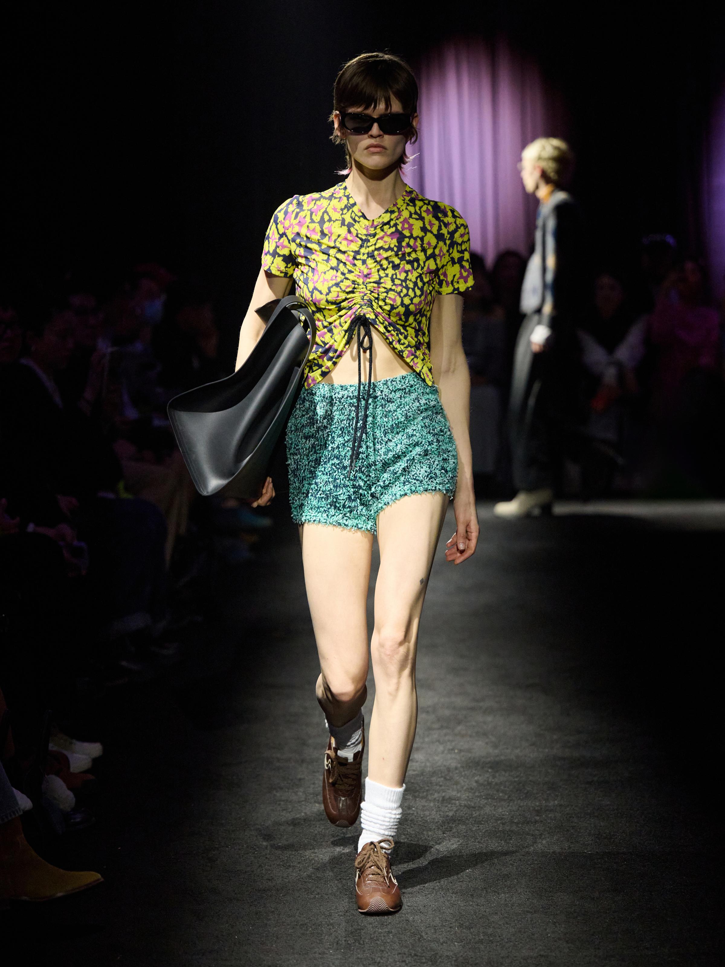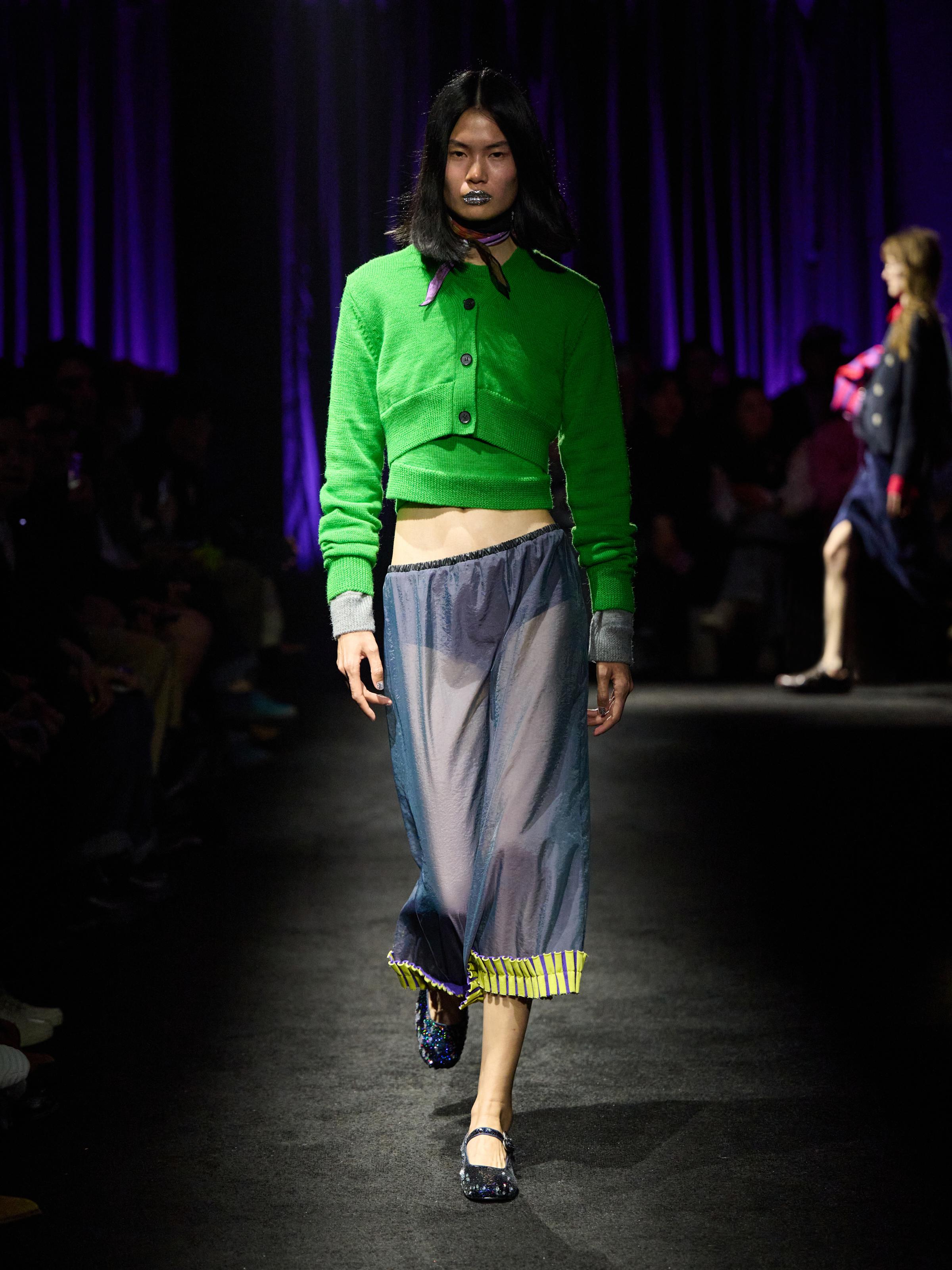 Short Sentence 2024秋冬系列以“Friends and Strangers”为名,灵感来自现居住于纽约的当代艺术家Katherine Bradford。她以轻松的绘画手法表达自我,几乎没有勾画面孔的人物形象,四四方方的身体和笨拙的手臂,在想象力的指引下任由潜意识挥洒颜料创作,调和出不被定义的色彩。艺术家的很多创作围绕人、海洋和星空元素展开,表面的轻松和快乐之下,自我沉浸的内心世界逐渐浮现展开。这种幽默而反叛的精神一直在她的人生选择中,也振奋着Short Sentence想以服装为载体表达同样的故事。