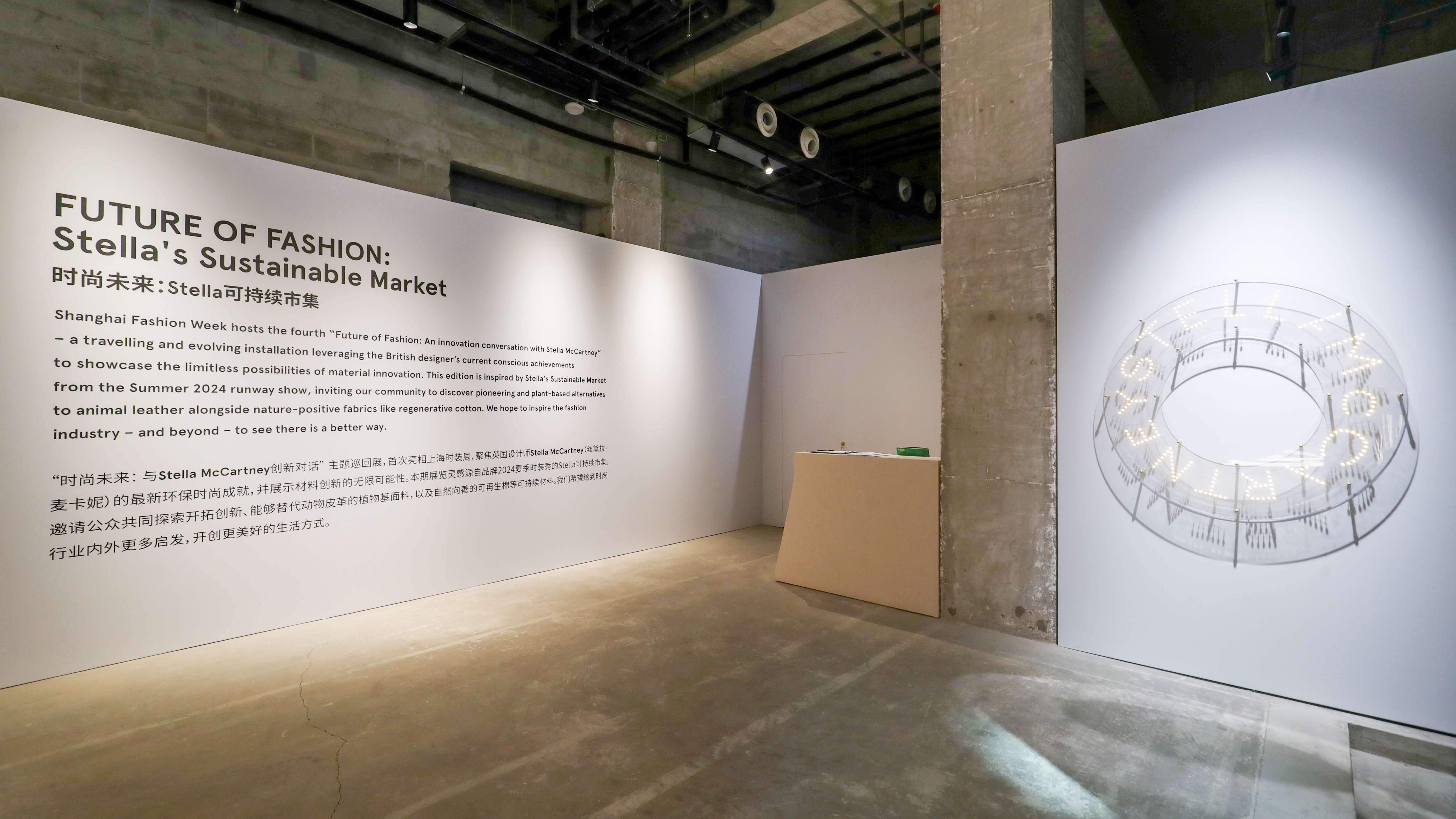 首次与中国消费者们见面的第四届《时尚未来:与Stella McCartney的创新对话》 (Future of Fashion: An innovation conversation with Stella McCartney) 主题展在众安·美丰大楼举办,于10月17日至22日面向公众开放。本次展览延续了巴黎时装周2024夏季秀场的创意,将丝黛拉·麦卡妮的可持续市集 (Stella's Sustainable Market) 的6家摊位搬至上海,邀请嘉宾和公众体验品牌迄今为止最具环保意识的产品系列与蕴含可持续妙思的先锋材料。<