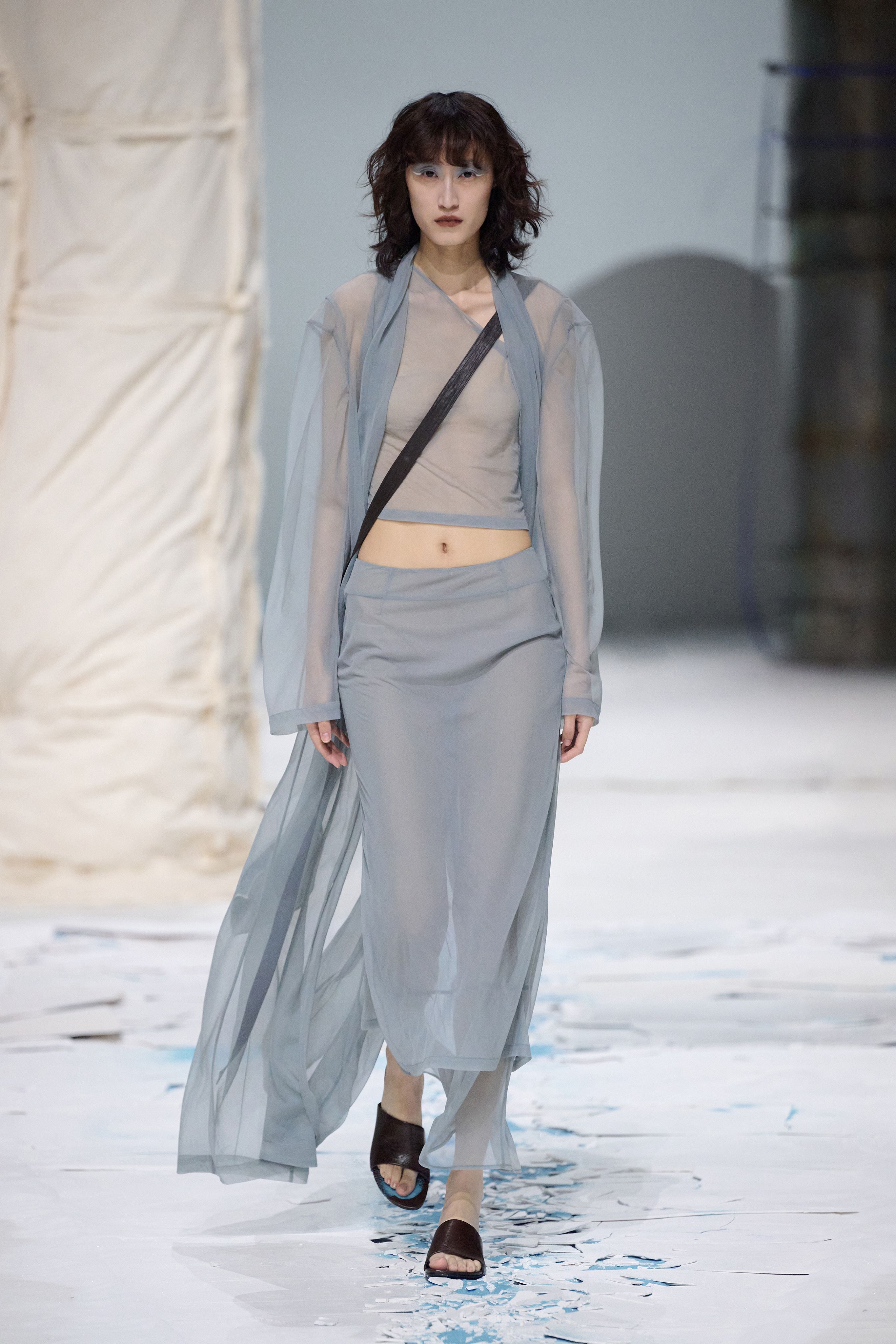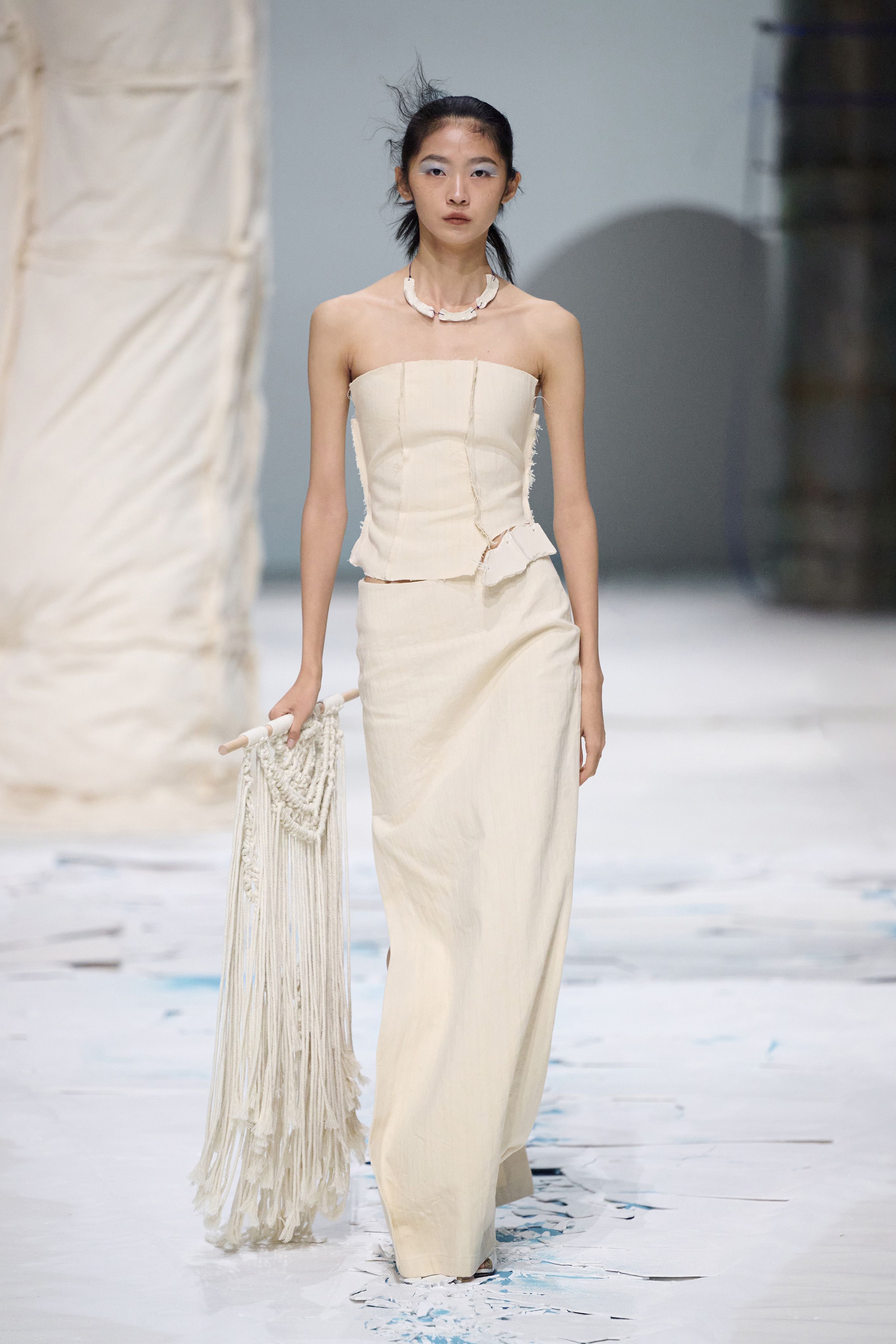 10月14日,ili node在红庭秀场发布了2026春夏系列“A Glaze”。这一季,品牌将目光投向1755年里斯本大地震后的重生之城,从城市以彩釉瓷砖修补裂痕的历史中汲取灵感,将“破碎亦得完整”的哲学转化为关于个体矛盾与重塑的当代叙事。