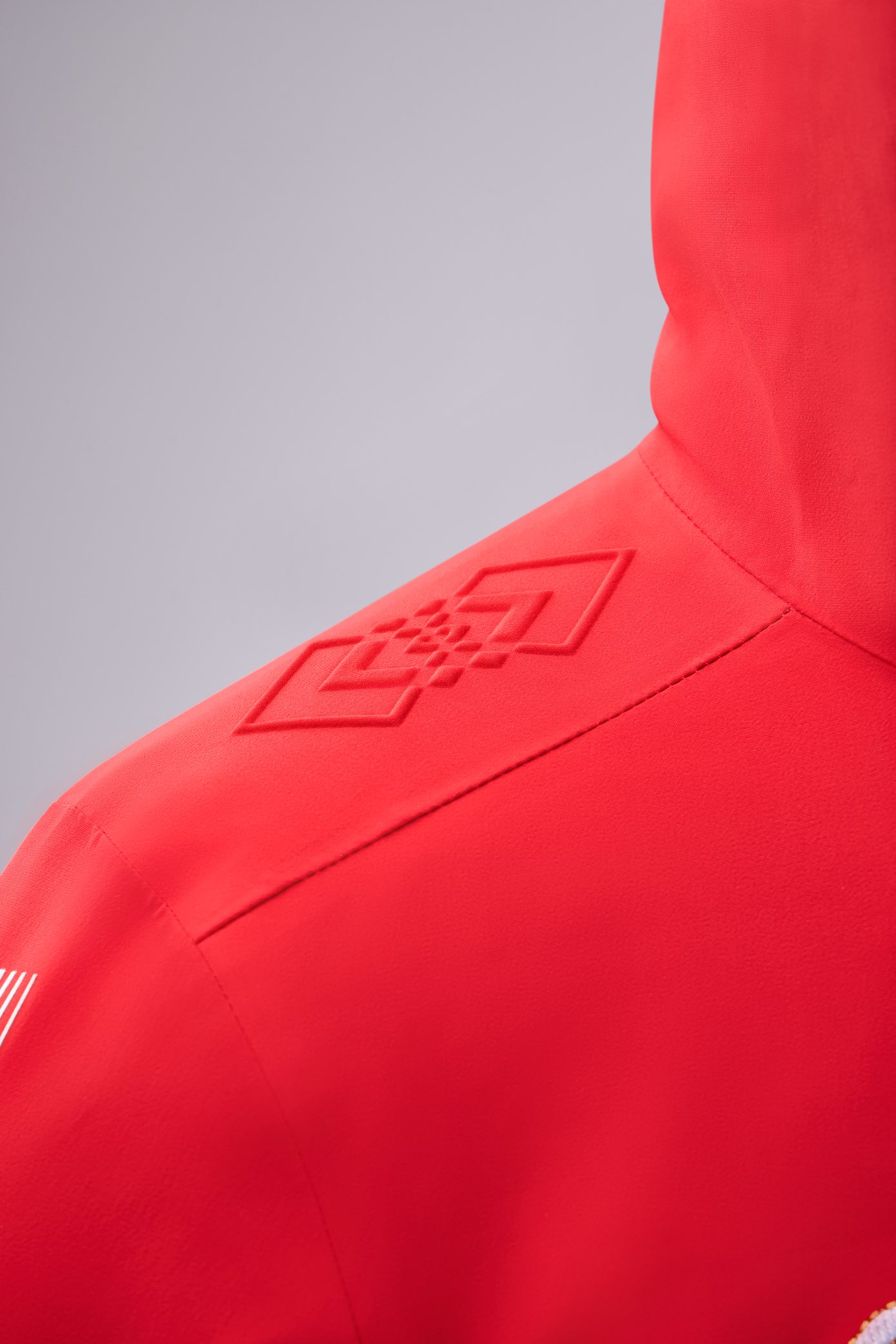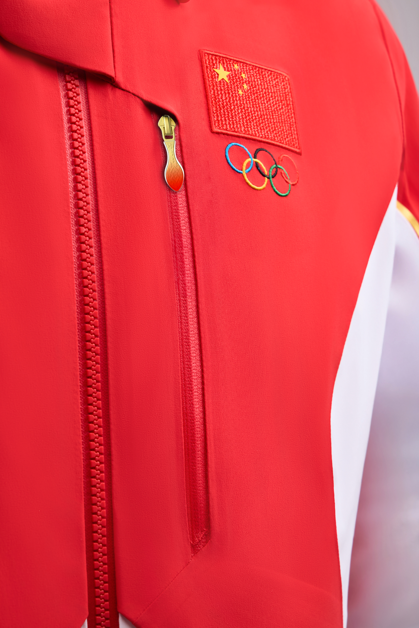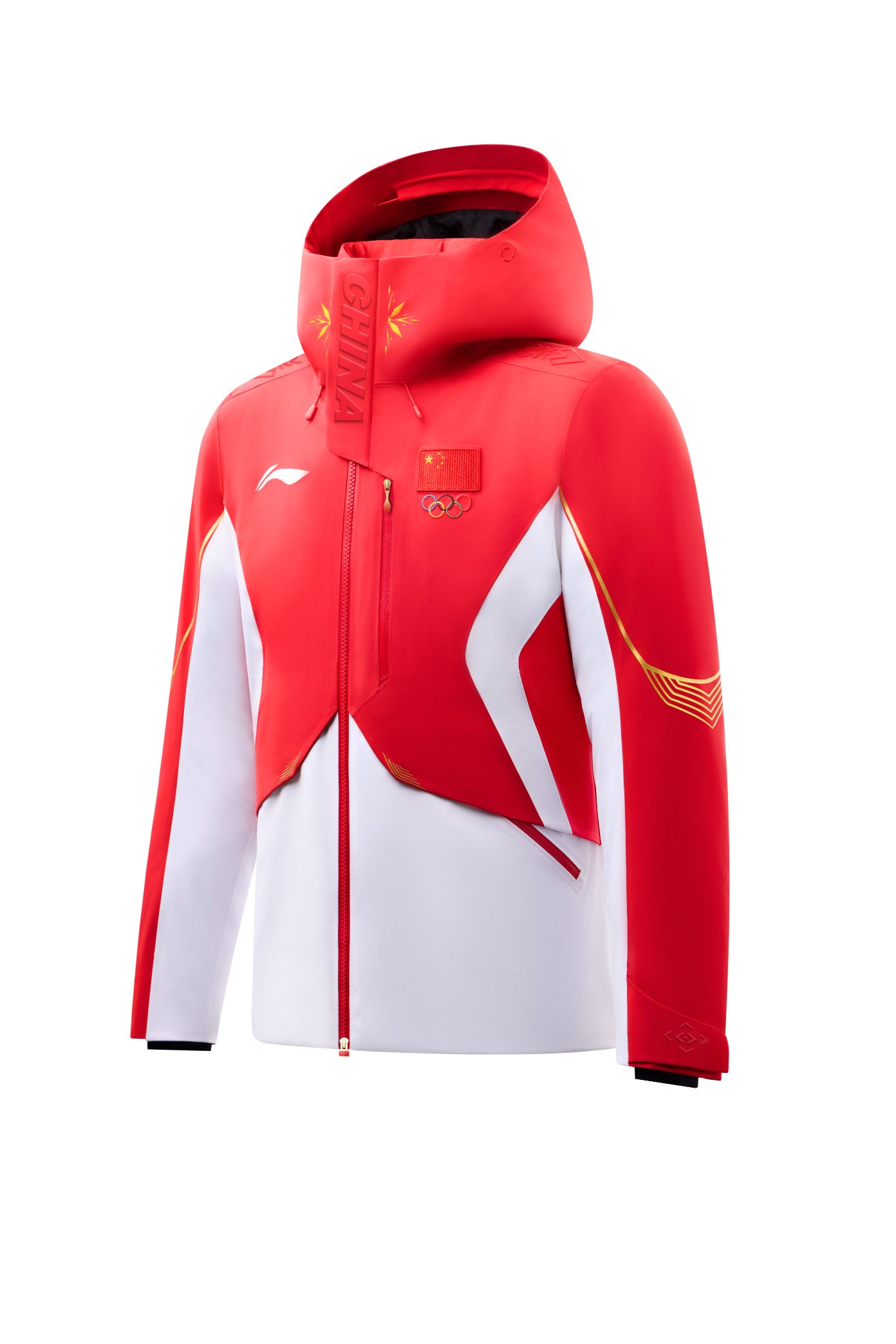 此次李宁为中国冬奥代表团设计的领奖装备以“中国红”和“雪山白”为主色调,前者代表中国运动员的文化身份,后者则强调冬季运动的环境意象。此外,领奖服正面的五角星线条、由中国传统“方胜纹”衍生而来的“双胜纹”、“双胜雪花纹”以及后背具备夜光功能的“CHINA”标识,也都旨在用现代的设计语言来讲述自身的东方故事。