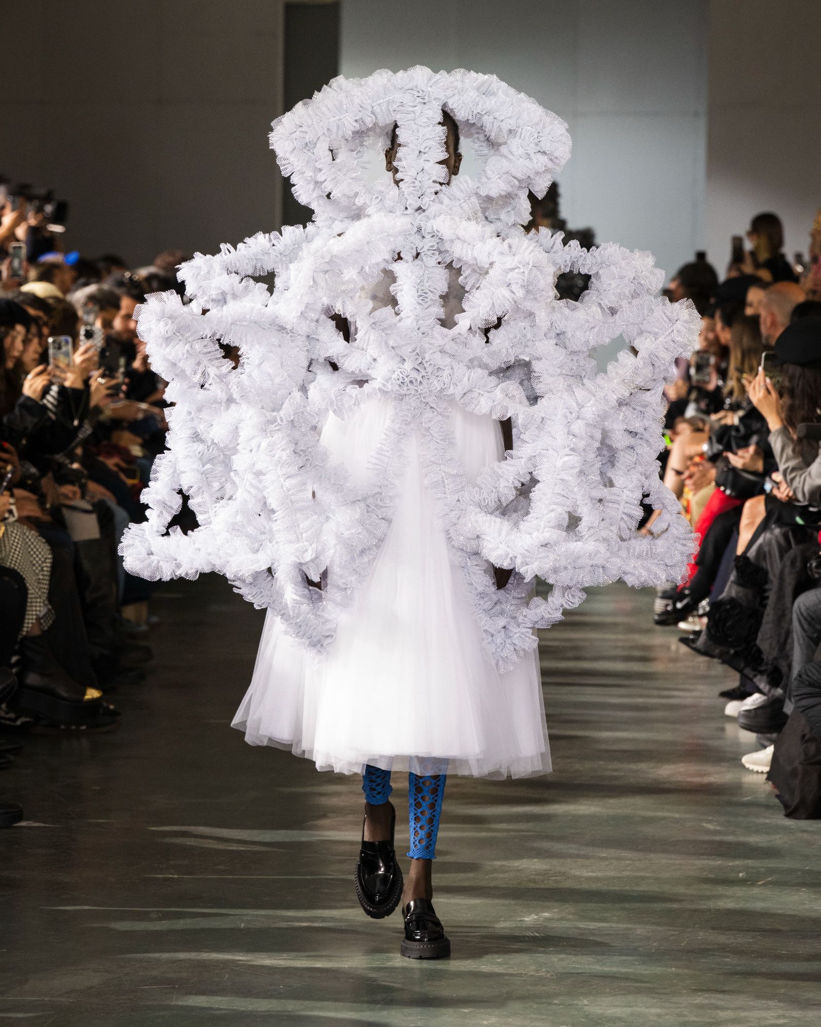 此次合作由Jimmy Choo创意总监Sandra Choi与设计师Kei Ninomiya共同打造,前者将品牌标志性的现代女性气质与精湛工艺,与Kei Ninomiya富有实验性的结构语言相结合,在看似对立的美学体系之间建立对话。<