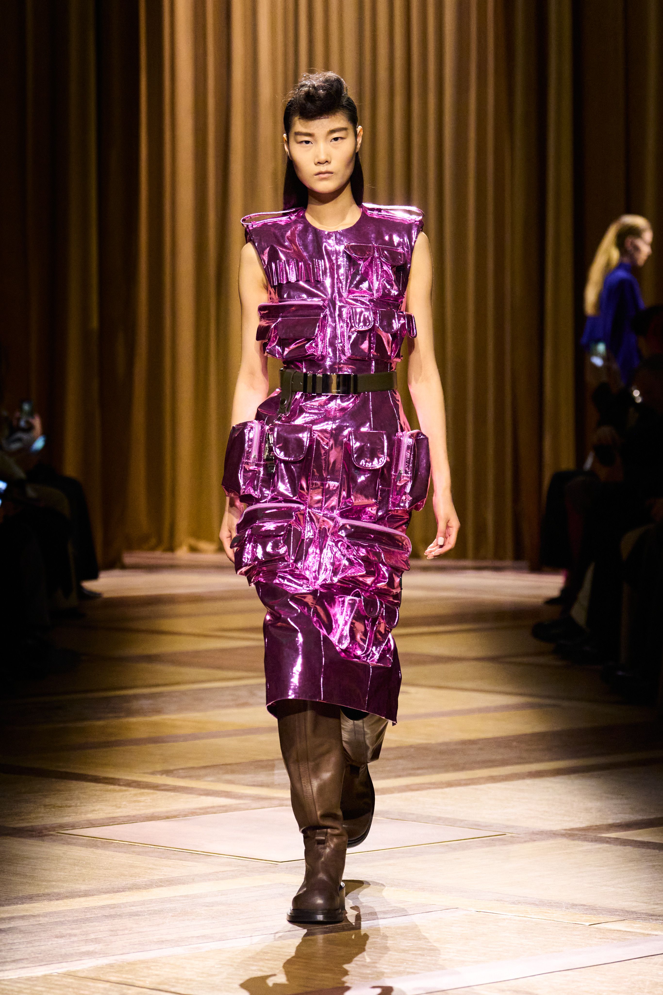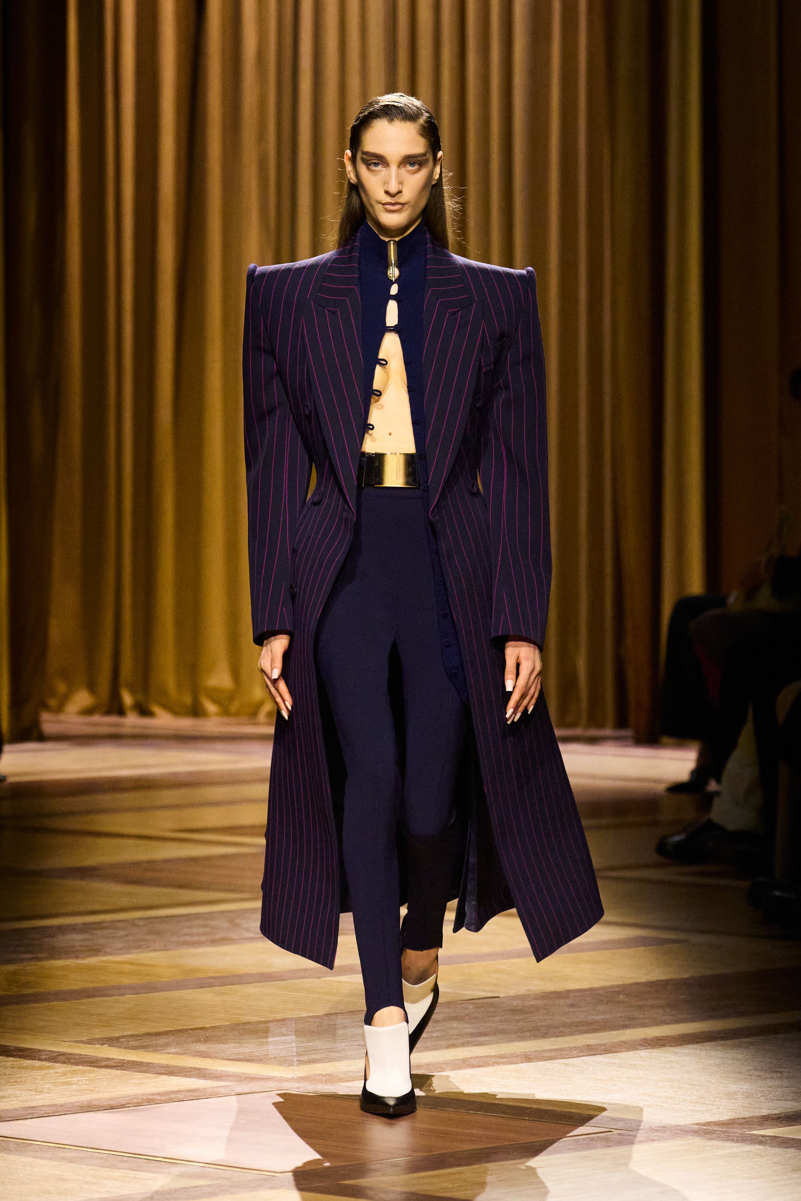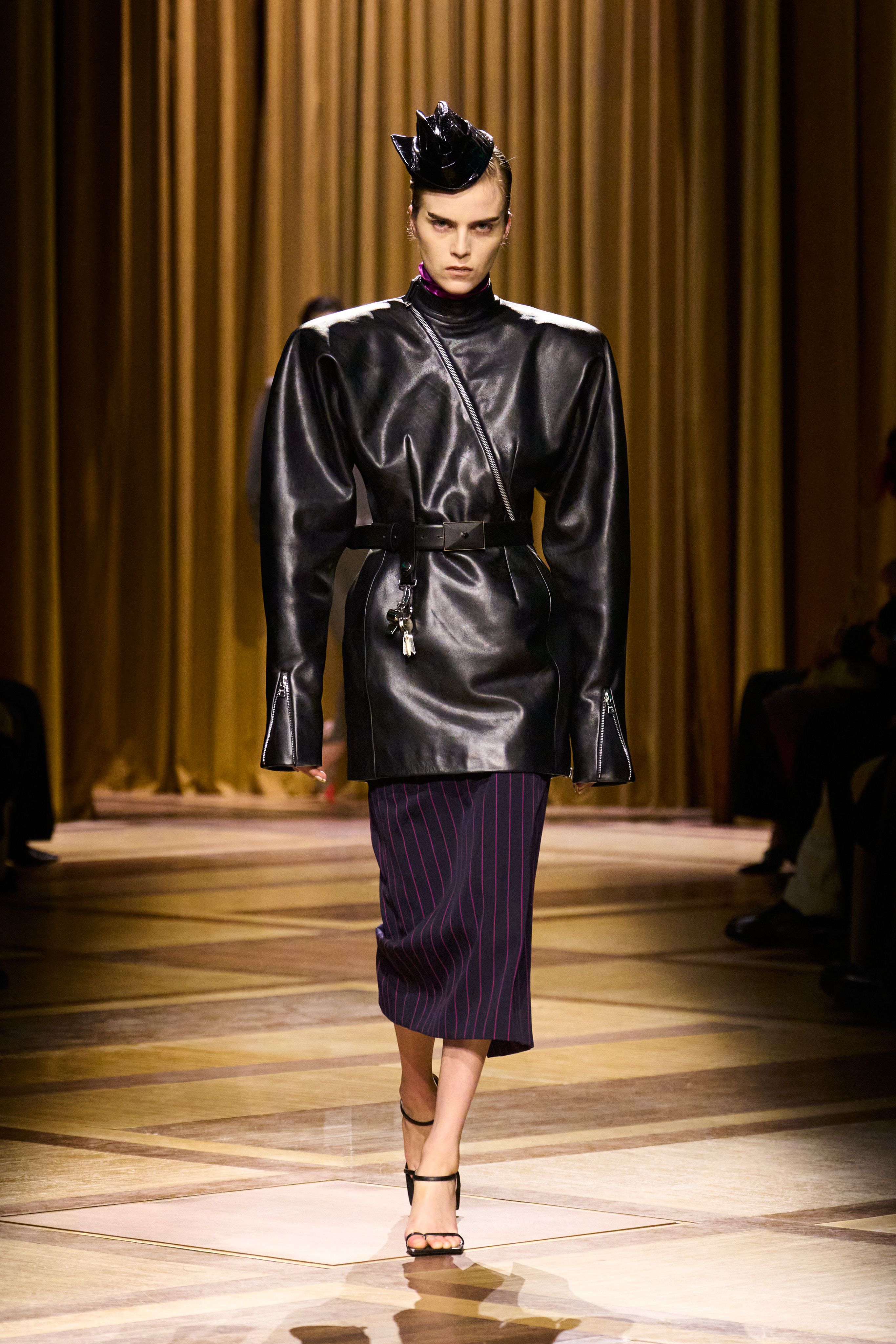 在与品牌创始人Manfred Thierry Mugler激进创想的对话中,“The Commander指挥官”重新解读了Les Secrétaires(“女秘书们”)与Hiver Militaire(“军事之冬”)等经典作品。四十余年后的今天,Castro Freitas以当代视角重塑权力美学——既肯定其历久弥新的魅力,也反思其在时代变迁中的演化。<