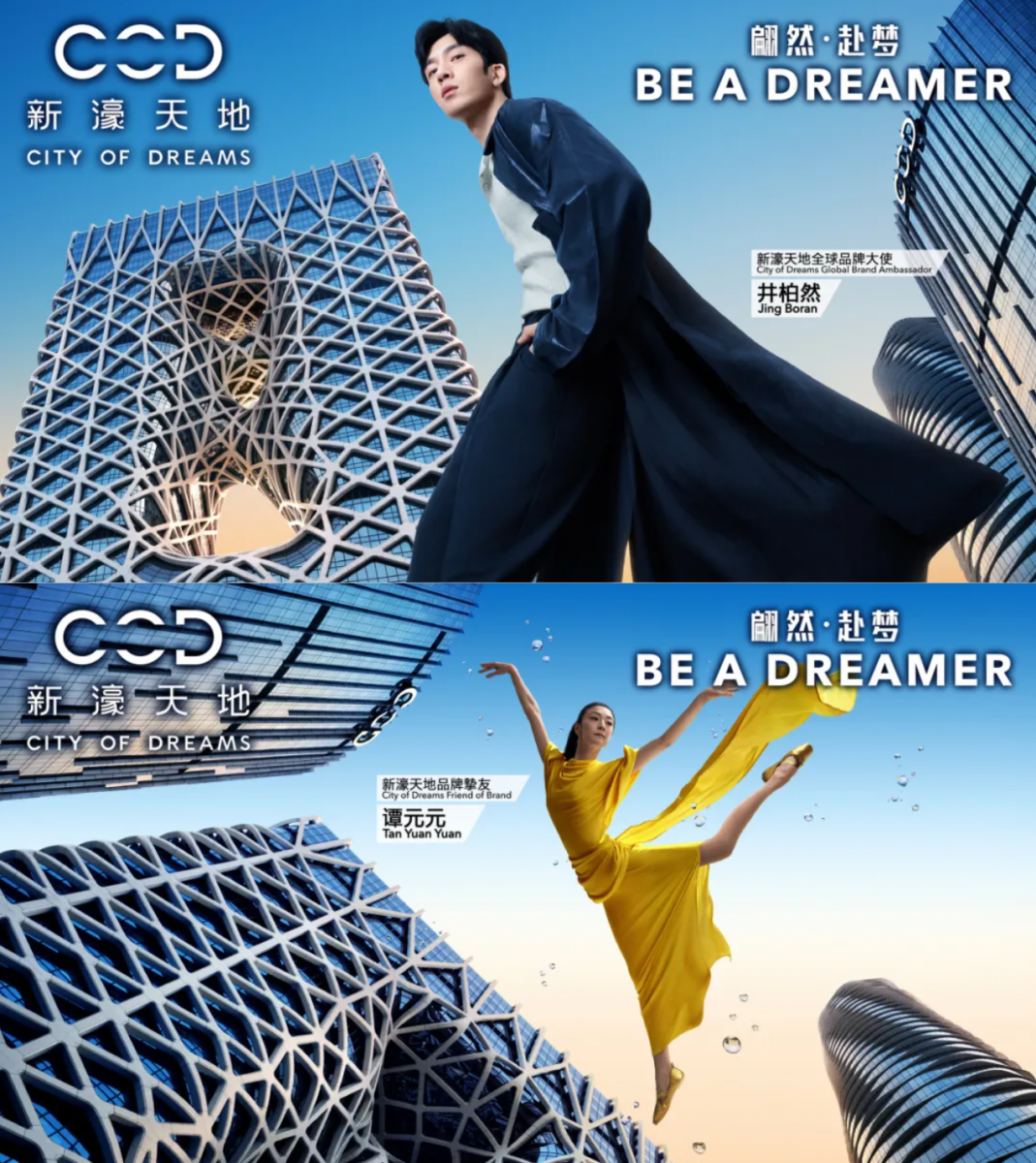3月10日,澳门新濠天地(City Of Dreams Macau)以盛大仪式正式启幕品牌新章“Be A Dreamer”,同时宣布演员井柏然为全球品牌大使、国际芭蕾舞艺术家谭元元担任品牌挚友。