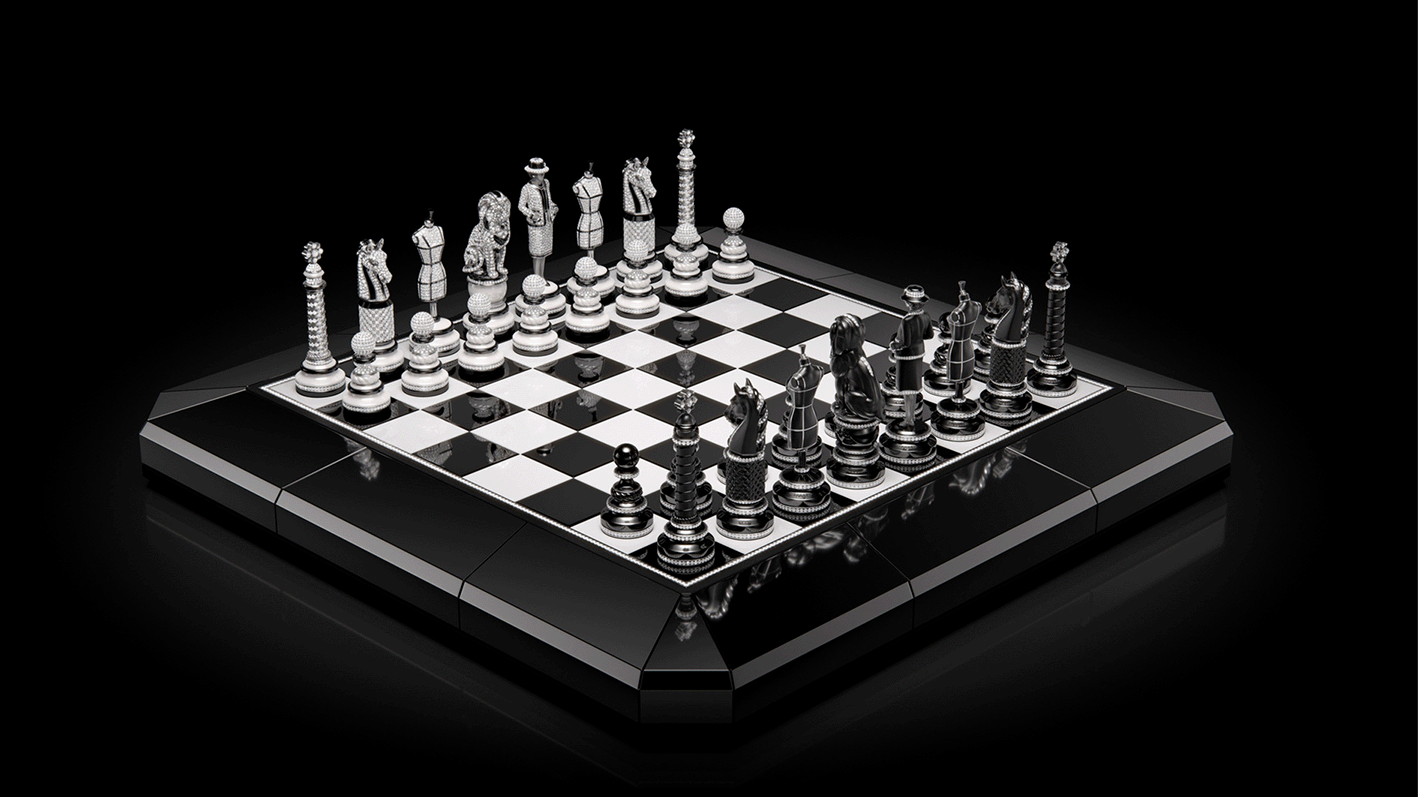 展位空间围绕“环境如何塑造精准”展开:冰雪森林、高山木屋与金色松木结构形成冷暖对比,中央一棵近四米高的冰雕松树成为视觉焦点。三层结构的动线设计,将品牌历史、机械创新与当代表达逐层展开,也让“制表师中的制表大师”这一身份有了更具象的表达方式。
