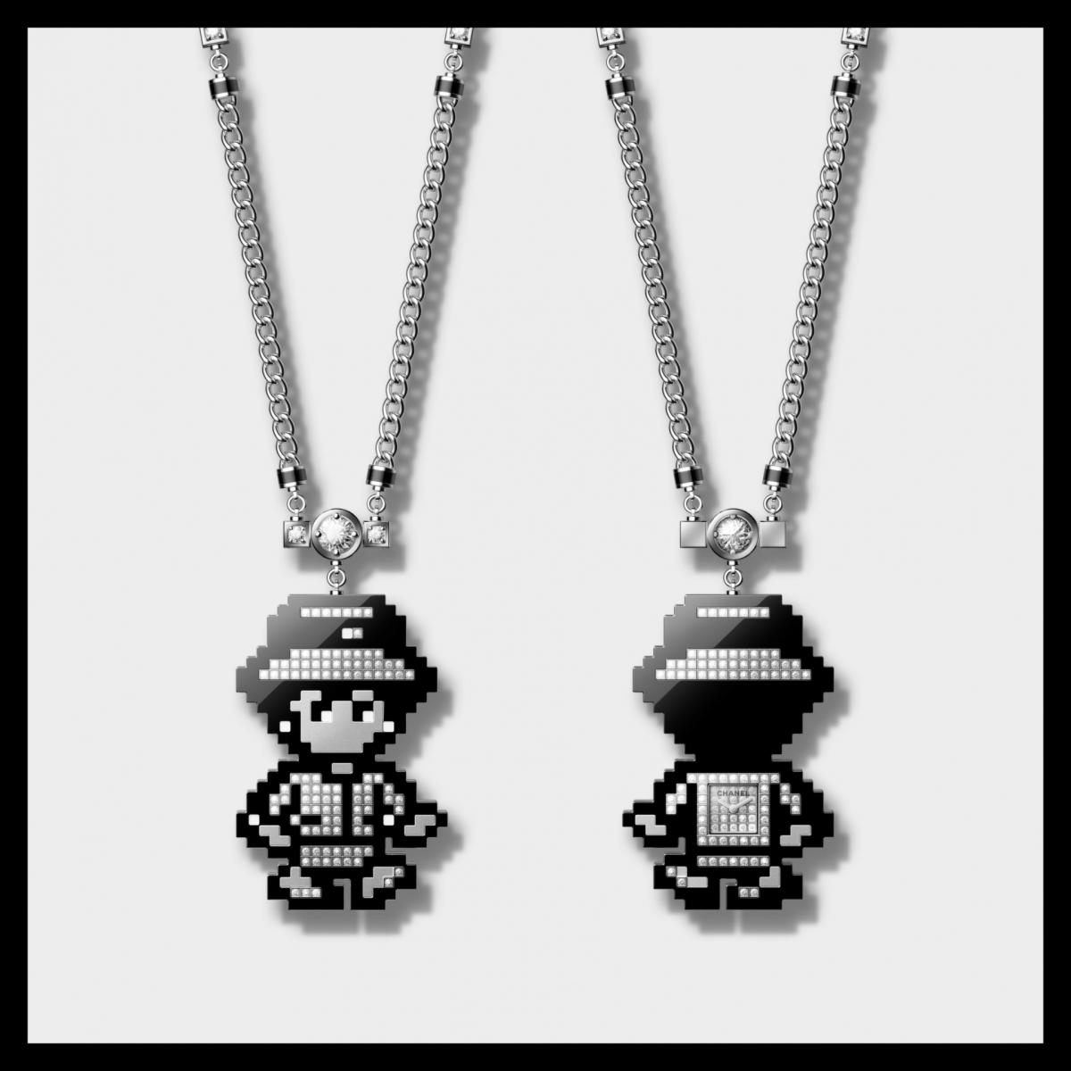 围绕该主题,香奈儿还推出多款腕表与珠宝时计:GABRIELLE腕表及长项链款以立体雕塑形式呈现香奈儿女士形象;COCO GAME长项链时计与戒指款则采用像素化设计语言;J12 COCO GAME系列在表盘或秒针中引入像素图案,并结合精密陶瓷与钻石镶嵌;J12 X-RAY COCO GAME腕表以合成蓝宝石结构呈现镂空机芯。