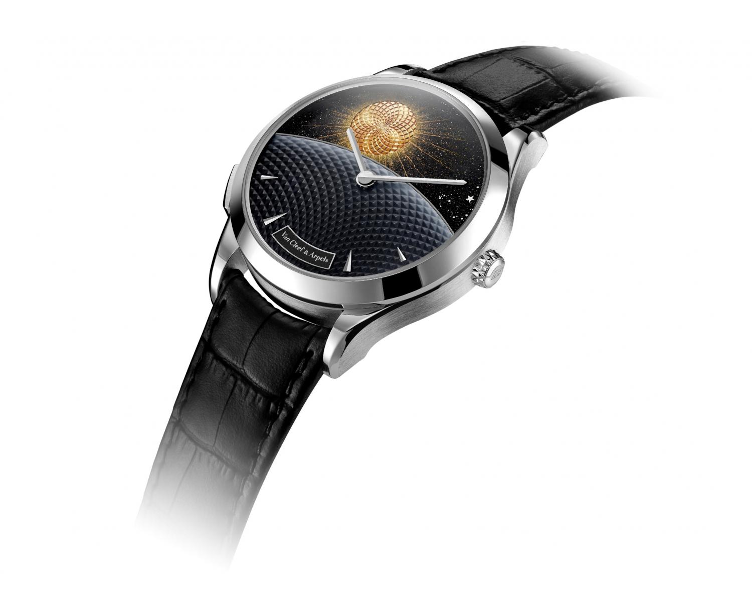 此次发布不仅延续品牌自20世纪以来对天文主题的持续探索,也通过复杂机械、珐琅工艺与宝石镶嵌的融合,强化其“时间叙事者”的独特定位。对Van Cleef & Arpels而言,时间从来不只是被读取的刻度,而是一种可以被讲述、被想象的存在。