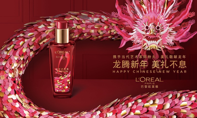 龙年来临之际,巴黎欧莱雅携手90后中国当代艺术家陈粉丸,特别打造欧莱雅护发精油2024年新年限定版,以美礼敬献龙年。