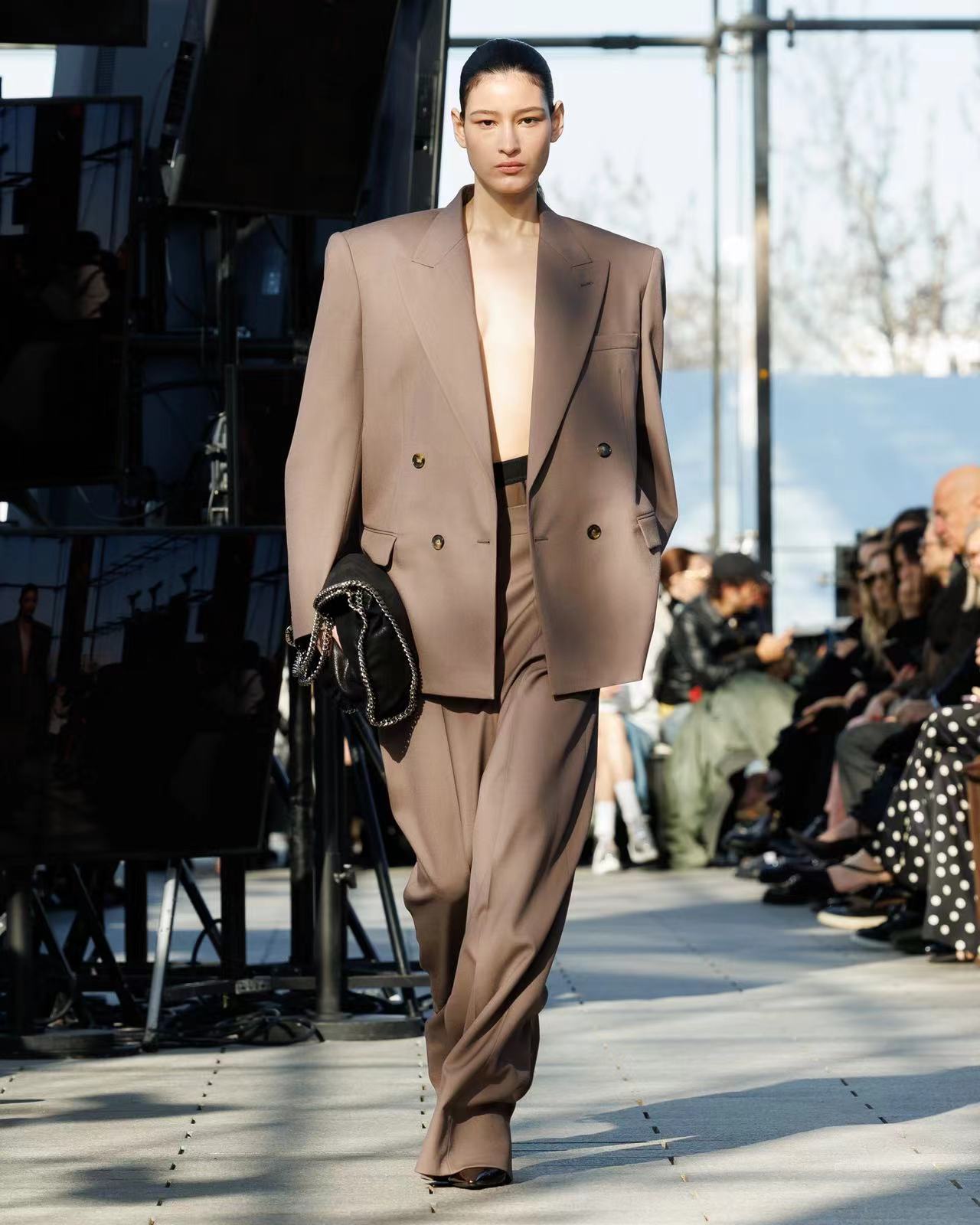 Stella McCartney 2024冬季系列是致地球母亲的一段宣言,设计师丝黛拉 (Stella) 希望通过这场大秀为地球发声。本场大秀于安德烈·雪铁龙公园 (Parc André Citroën) 举办,奥斯卡金像奖得主奥利维娅·科尔曼 (Olivia Colman) 、海伦·米伦 (Helen Mirren) 引领其他环保主义者共同诵读宣言,视频在现场大屏幕上播放。<